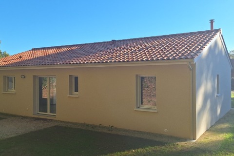 SAINT-CAPRAISE-DE-LALINDE A LOUER JOLIE MAISON NEUVE T4 DE 95 M² SH DE PLAIN-PIED, BELLE PIECE DE VIE AVEC CUISINE ÉQUIPÉE, 3 CHAMBRES AVEC PLACARD, SALLE D'EAU, CELLIER, GARAGE ET JARDIN DE 1000 M² NON CLOS..
