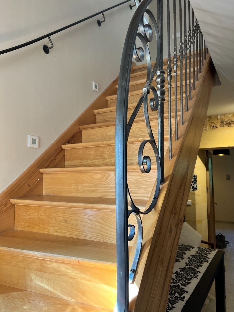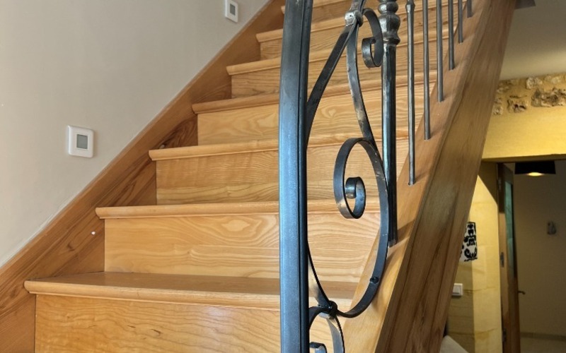 First part including a magnificent entrance with a well of light, vast stay lounge kitchen equipped with visible beams and chimney for a surface of 89 m ², very luminous, beautiful openings and a balcony to benefit from the sight, 2 large suited bedrooms.