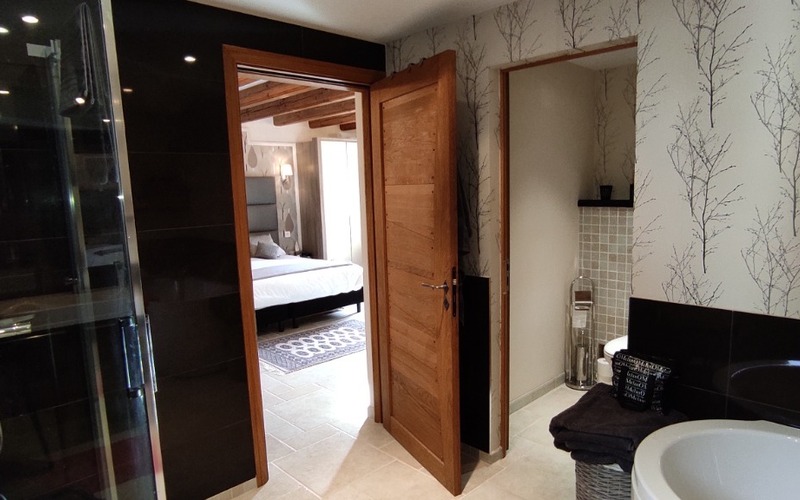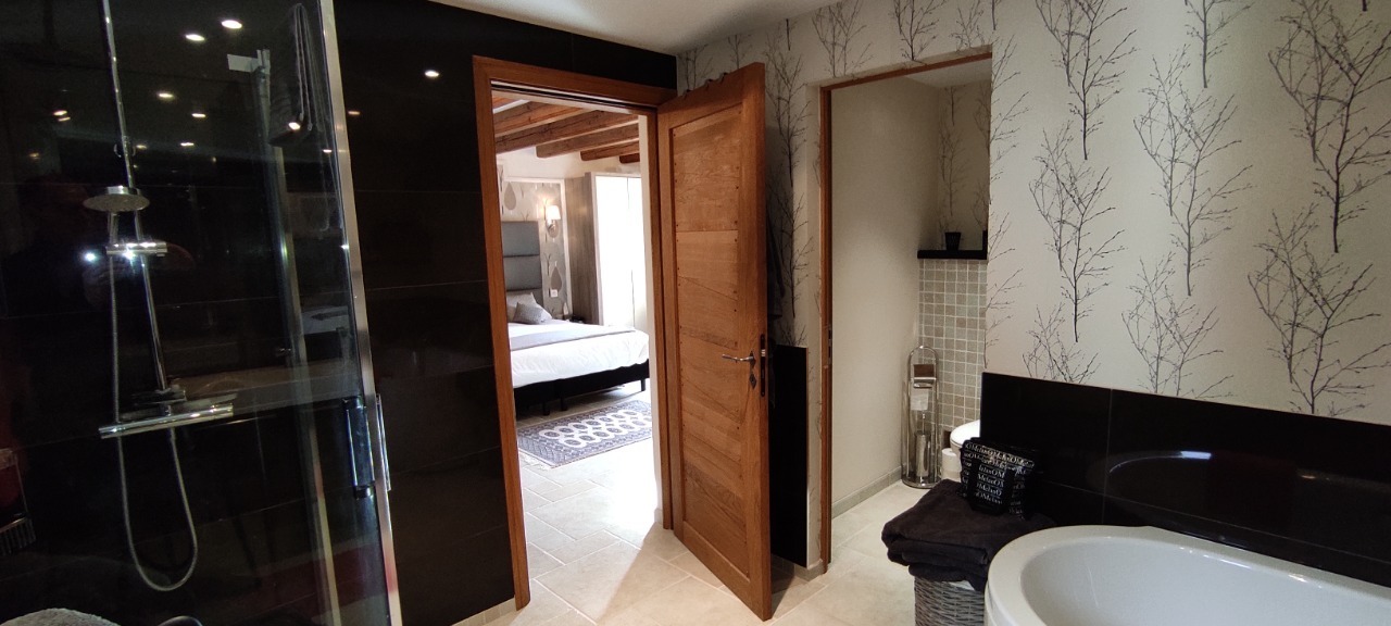 Première partie comprenant une magnifique entrée de 20,25 m² avec vestibule avec un puit de lumière, vaste séjour salon cuisine équipée avec poutres apparentes et cheminée pour une surface de 89 m², très lumineuse, hauteur des plafonds + 2,60 m environ, belles ouvertures et un balcon pour profiter de la vue, 2 grandes chambres suitées de 25,20 m² + la salle d'eau et pour la seconde 18,80 m² + la salle d'eau.