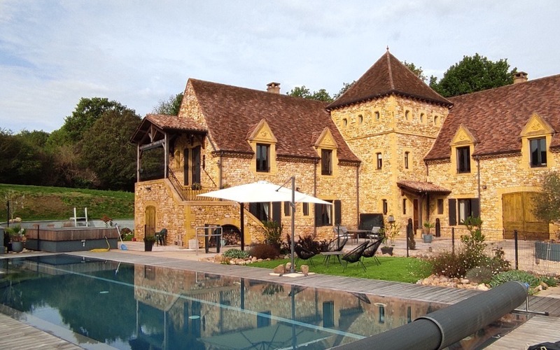 MAGNIFIQUE ET EXCEPTIONNELLE DEMEURE EN PIERRE AVEC VUE, 450 M² HABITABLES, VASTES PIECES DONT UNE LOCATION SAISONNIERE DE CHARME SUR UN PARC DE 4740 M² + PISCINE A DEBORDEMENT ET A 20 MN DE L'AEROPORT DE BERGERAC.