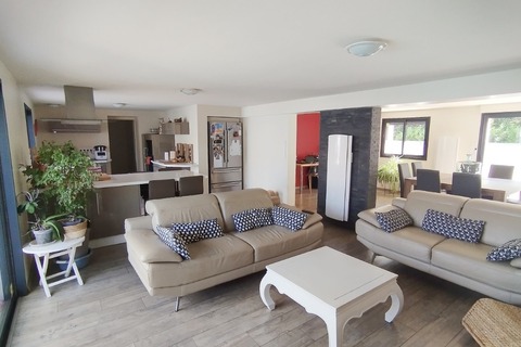 COUZE ET SAINT-FRONT PROCHE DES COMMODITÉS ET ÉCOLE JOLIE MAISON CONTEMPORAINE SUR 2 NIVEAUX PLUS DE 146 M² HABITABLES TRÉS BIEN ÉQUIPÉE ET EN PARFAIT ÉTAT, BELLE PIECE DE VIE AVEC CUISINE ÉQUIPÉE, 4 CHAMBRES + PISCINE COUVERTE ET CHAUFFÉE + POOL-HOUSSE + DOUBLE GARAGE ATTENANT, JARDIN CLOS PAYSAGÉ.