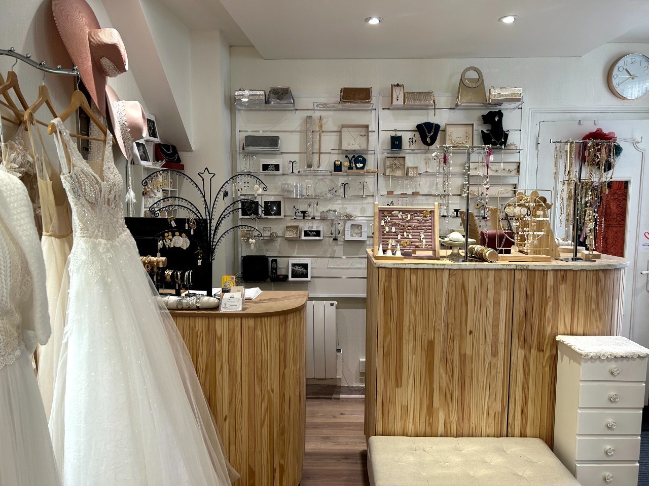 Fonds + stock comprenant de magnifiques robes de mariée, robes de cérémonie, accessoires, bijoux etc . . .