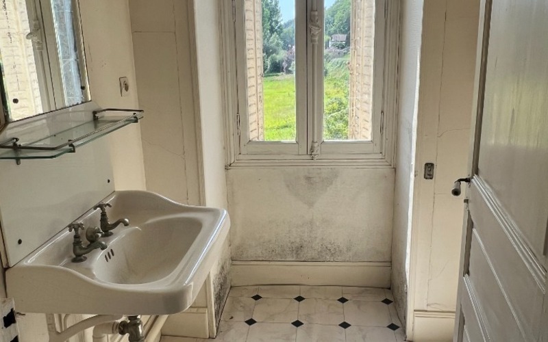 1er étage : Dégagement, 6 m², salle de bains 13.30 m², 1 chambre de 14,40 m², une chambre de 18 m², wc, une pièce de 3.30 m² avec un point d'eau et une fenêtre.