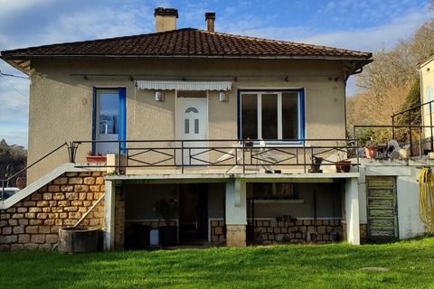 A 10 mn de Lalinde Jolie Maison de 80 m² sh rénovée composée, d'un séjour salon cuisine équipée, 2 chambres, salle d'eau, RDC 2 garages, une cave un atelier, cc gaz de ville + panneaux photovoltaïques , terrain clos de 1375 m².