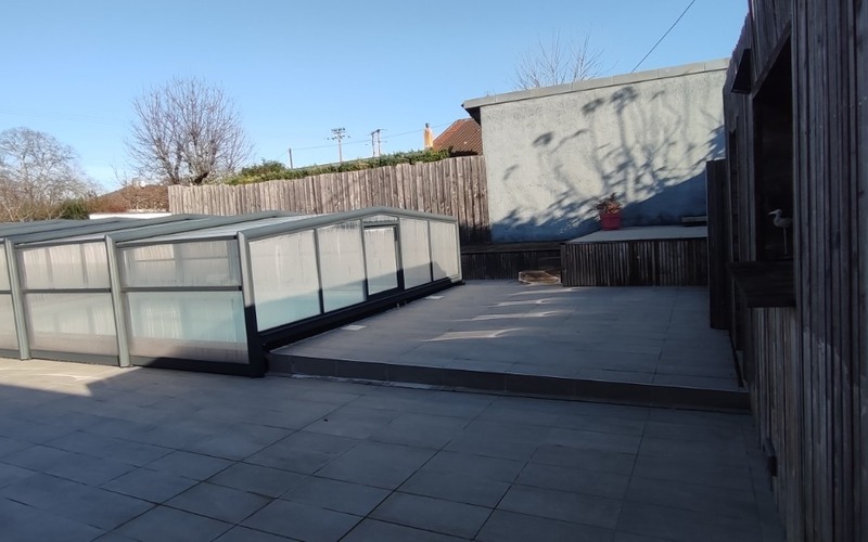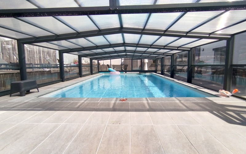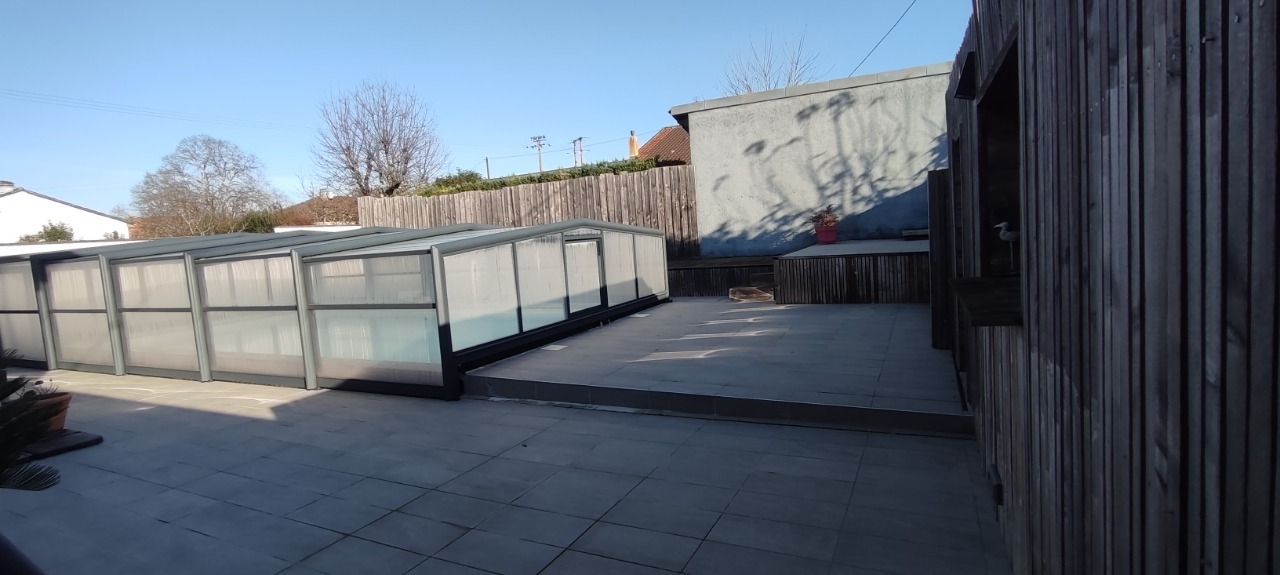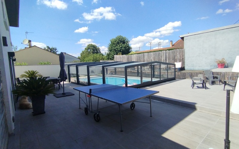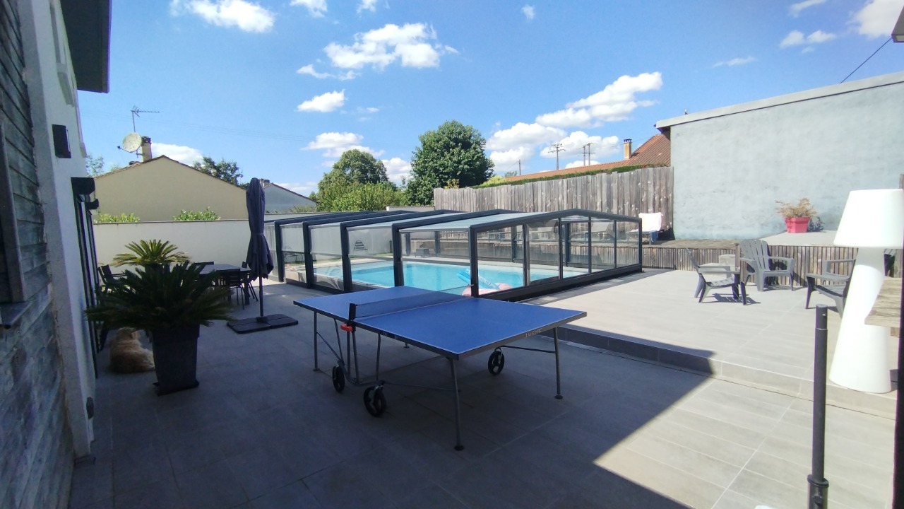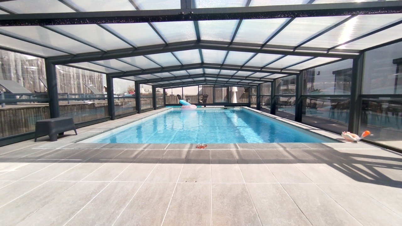 A l'extérieur : Le jardin est paysagé et conçu pour ne pas voir d'entretien, une piscine couverte et chauffée de 9 x 4,5 vous séduira ainsi que son Pool-housse style buvette équipé avec un wc et une douche pour ne pas salir l'intérieur de la maison, son coin plancha, terrasse de 200 m² environ, le jardin est clos avec un portail coulissant électrique stationnement possible même pour un camping car à l'intérieur et stationnement possible aussi à l'extérieur.