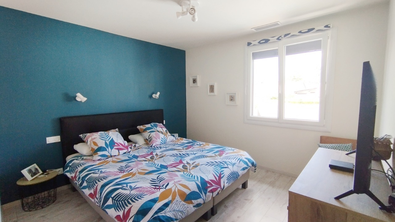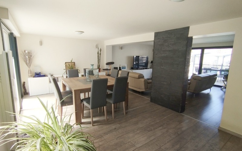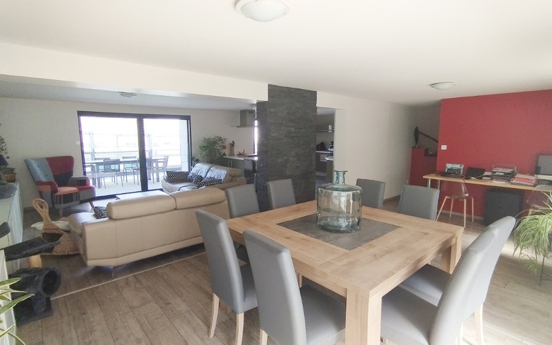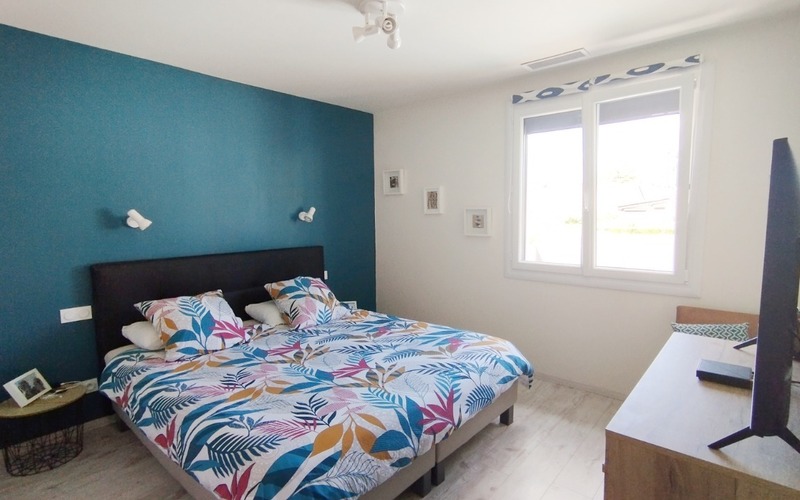 D'une jolie entrée dans un dégagement avec dressing, d'une vaste pièce de vie lumineuse avec cuisine moderne et un ilot central, vous profiterez de ces grandes ouvertures à galandages en alu, un cellier buanderie, une salle de bains, un toilette, un accès direct à un double garage de 30 m² avec sol bétonné pouvant être transformer en chambre suitée ou autre.