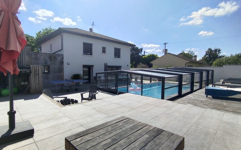 A l'extérieur: Le jardin est paysagé est facile d'entretien, une piscine couverte et chauffée de 9 x 4,5 vous séduira ainsi que son Pool-housse et son coin plancha, terrasse de 200 m² environ, le jardin est clos avec un portail coulissant électrique, stationnement possible à l'intérieur et à l'extérieur.