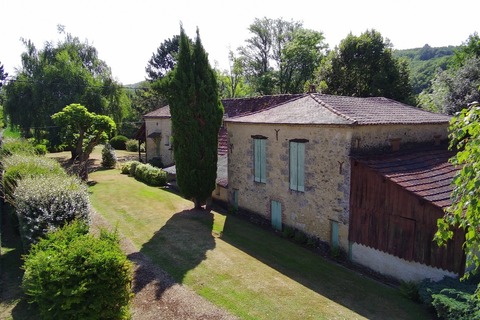 Située dans un cadre exceptionnel proche de la Dordogne, Propriété comprenant une Maison en pierre + gîte T3 + dépendances, le tout sur 9 796 m²