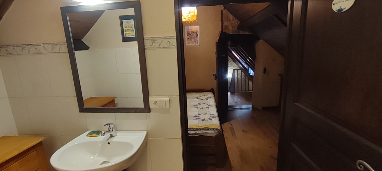 Etage: Un palier, une chambre, une mezzanine, une salle d'eau et un wc.