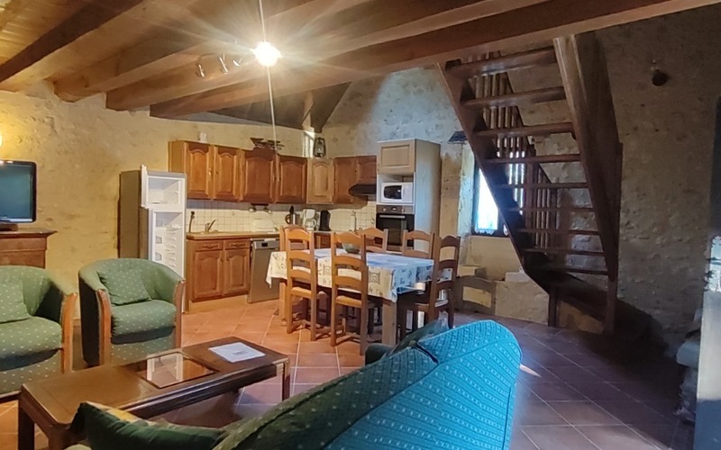 Situé à 5 mn de Lalinde dans un bel environnement en campagne et au calme, ravissante fermette de caractère en pierre sur 2 niveaux d'une surface de 90 m² environ composée: