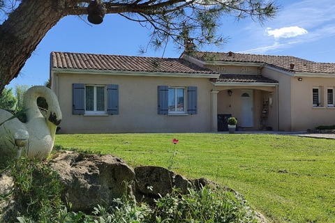 A 5 mn de Lalinde Jolie maison fonctionnelle et lumineuse de 130 m² habitables de plain-pied, en parfait état et très bien équipée, vaste séjour salon avec un poêle à bois, cuisine moderne équipée, belle terrasse couverte, cellier buanderie, 4 chambres, une salle de bains complète, wc, panneaux photovoltaïques, grand garage, un appentis, abri de jardin, agréable terrain clos de 4 299 m², assainissement individuel conforme.