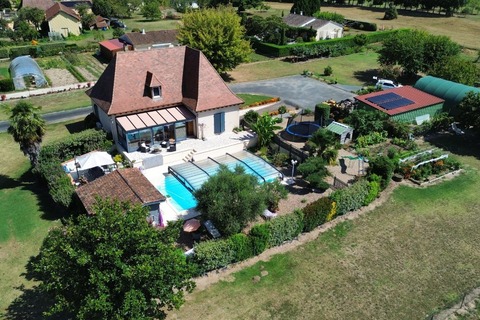 LALINDE, SUPERBE ENSEMBLE IMMOBILIER RÉNOVÉ, SITUÉ DANS UN ENVIRONNEMENT EN PLEINE NATURE , COMPRENANT UNE JOLIE MAISON BOIS DE 204 M² HABITABLES EN PARFAIT ETAT ET TRES CHALEUREUSE + 2 GITES DONT UN AVEC SPA PRIVÉ + PISCINE CARRELÉE ET CHAUFFÉE, TERRAIN SEMI-CLOS DE 5 593 M² ARBORÉ + UNE SURPRISE ! UNE CABANE PERCHÉE DANS LES ARBRES.