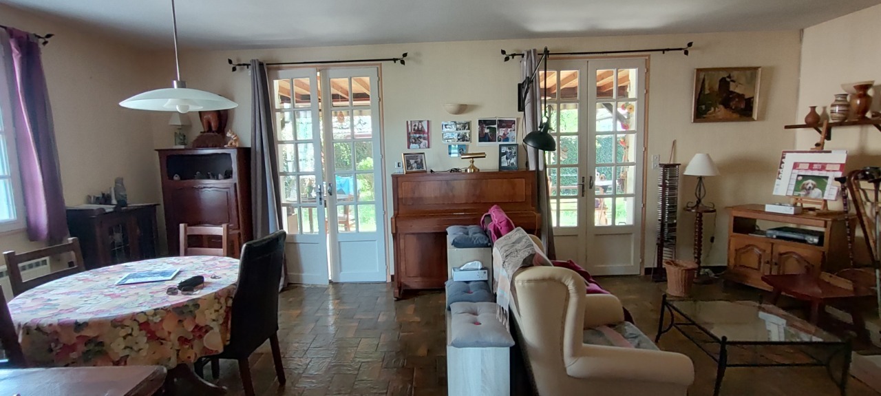 Située au calme dans un quartier résidentiel et proche commodités et école, jolie maison de plain-pied de 94 m² habitable composée de : Entrée sur un dégagement, cuisine aménagée de 9,40 m², séjour salon de 30 m² avec cheminée insert accès sur une véranda de 19 m², 3 chambres de 12, 20 m² + placard, 12,16 m² et 10 m² + placard, une salle d'eau de 3,40 m², wc.
