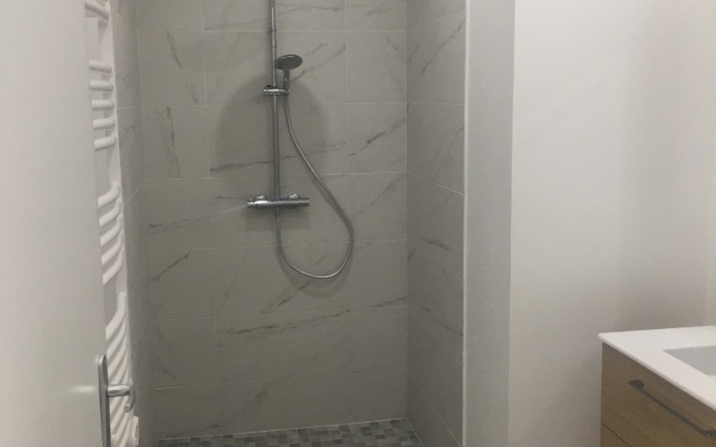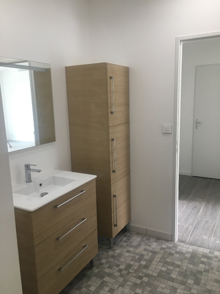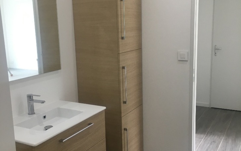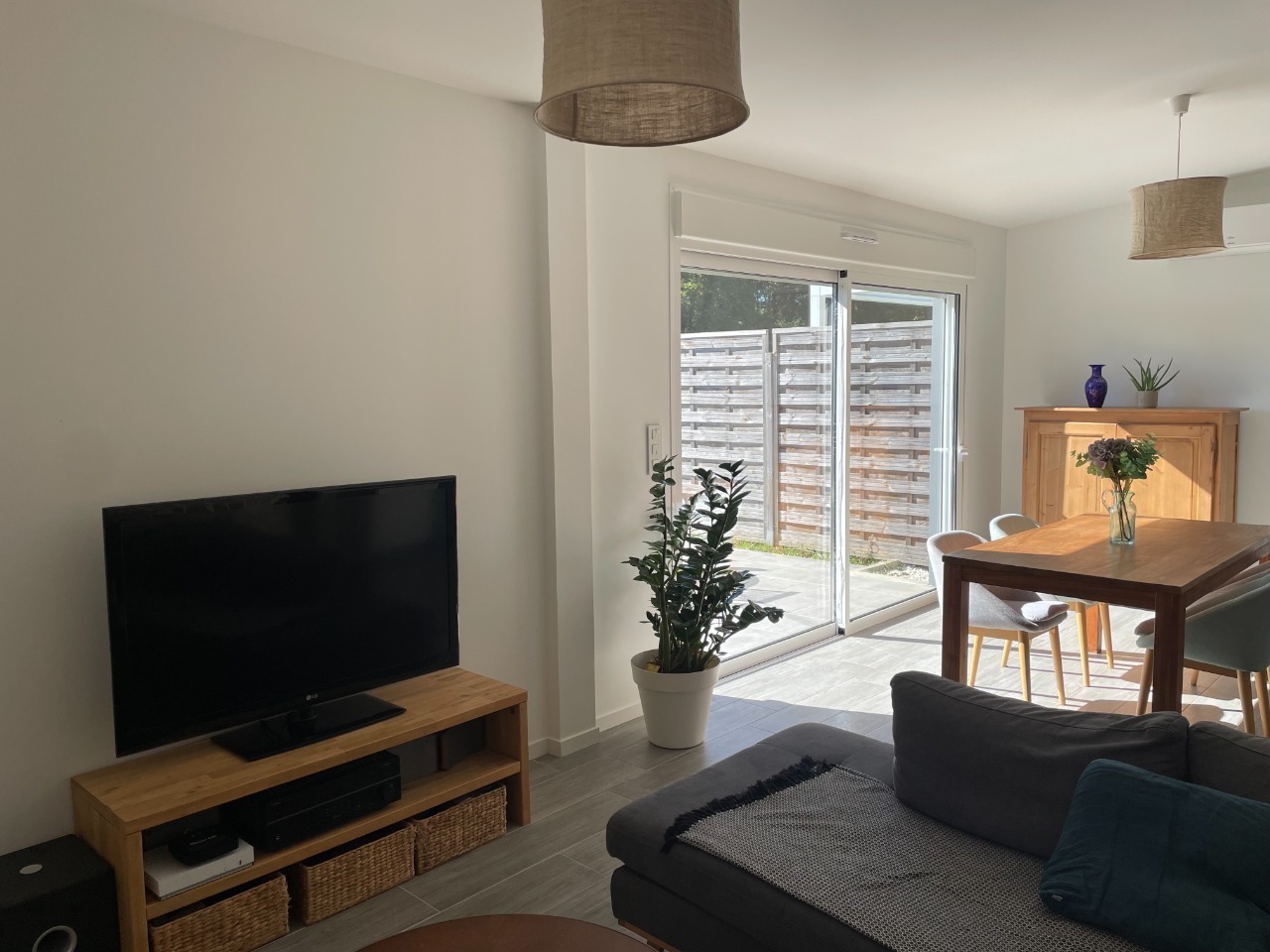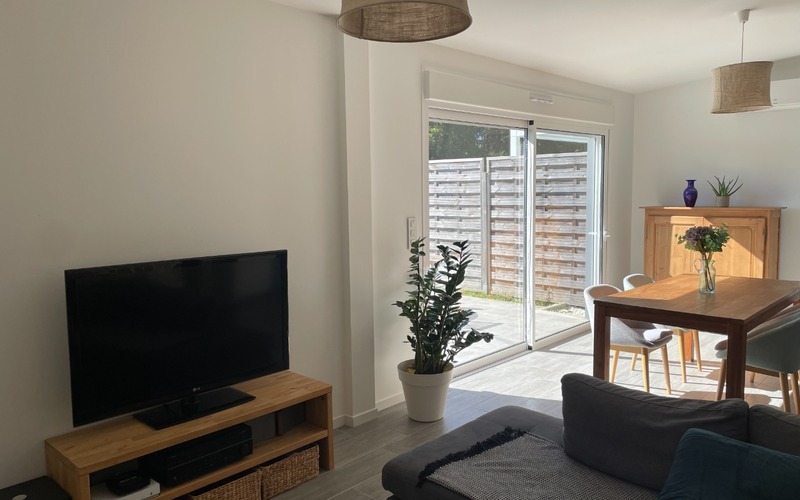 Le logement est composé d'une pièce de vie lumineuse avec baie vitrée en alu comprenant un séjour salon avec cuisine équipée avec un accès à la terrasse, 2 chambres avec placard, une salle d'eau avec grande douche Italienne et meuble vasque, un toilette indépendant, un cellier avec