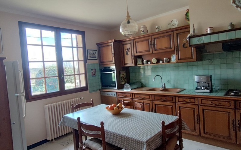 Entrée sur dégagement, séjour salon avec cheminée de 30mé environ plus un accès direct à une véranda chauffée de 16.00m², cuisine équipée de 11m² environ, 3 chambres avec placard de 11 à 13m², un grenier avec plancher hourdis béton, une cave de 33m² avec chaufferie fuel.