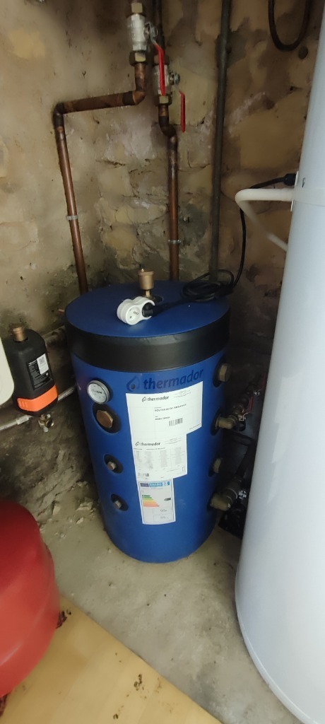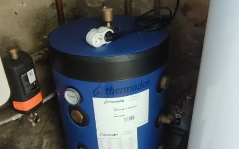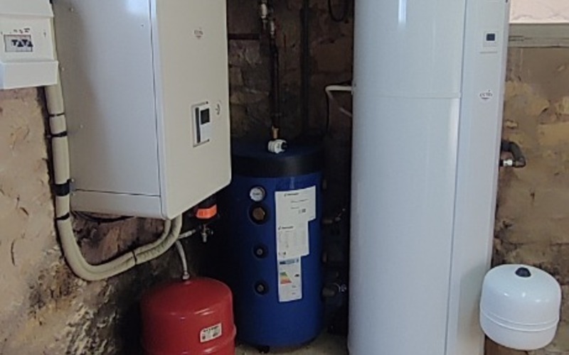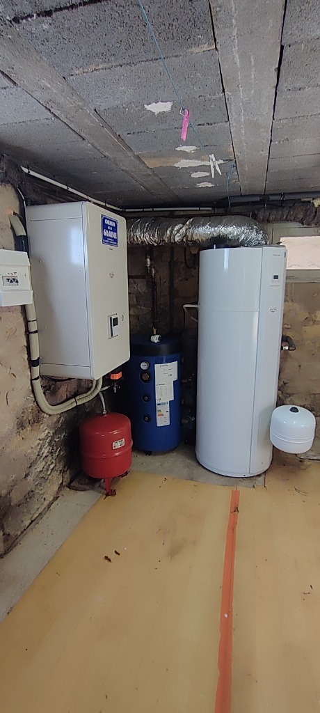 Chauffage central par pompe à chaleur + 2 clim réversibles, PVC double vitrage, isolation par l'extérieur faite.