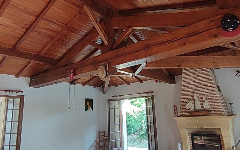 Entrée dans un dégagement de 8.00m², beau séjour-salon de 37.00 m² avec cheminée, belle poutres apparentes, très jolie cuisine équipée (Four/plaque/hotte aspirante) de 13.80 m² avec accès sur une belle terrasse et un dégagement/rangements qui donne sur le garage de 26.00m² sol béton.