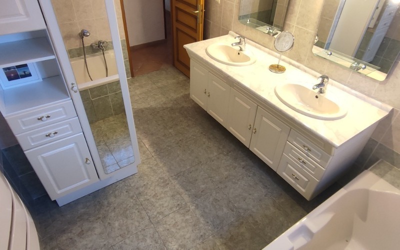 Partie nuit : Un couloir pour protéger du bruit, 3 chambres dont 2 avec placards, une belle buanderie, une grande salle de bains de 9.10m² avec bain / douche / 2 vasques sur meubles/sèche serviettes).