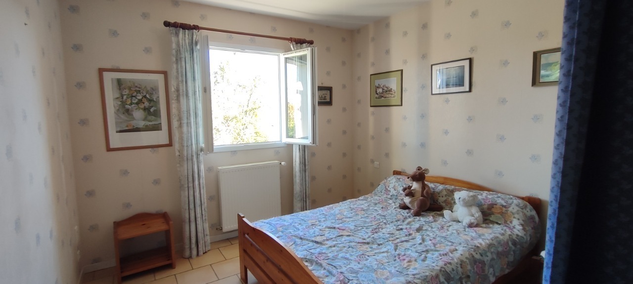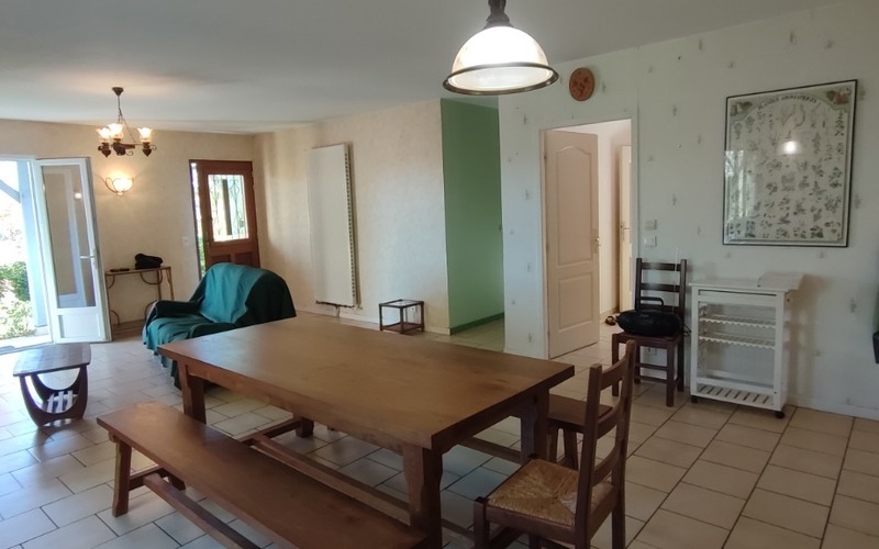 JOLIE MAISON DE PLAIN-PIED DE L'ANNÉE 2007, 97 M² HABITABLE EN BON ÉTAT COMPOSÉE D'UN BEAU SÉJOUR SALON AVEC CHEMINÉE INSERT ET D' UNE CUISINE OUVERTE ÉQUIPÉE, UNE GRANDE TERRASSE COUVERTE, CELLIER BUANDERIE, UN ACCES AU GD GARAGE, 2 BELLES CHAMBRES, UNE SALLE D'EAU, WC, CHAUFFAGE CENTRAL GDV, AGRÉABLE JARDIN CLOS DE 2214 M² + UN ABRI DE JARDIN.