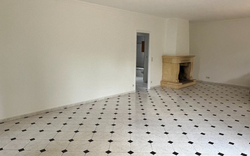 Entrée sur dégagement, beau séjour-salon de 38.3 m² avec cheminée ouverte, une cuisine aménagée de 13.60 m², une buanderie de 7.20 m², couloir avec placards, 2 chambres de 15.80 m² et 10.20 m², une salle de bains, toilette avec fenêtre, garage communicant avec la cuisine de 18.40 m².